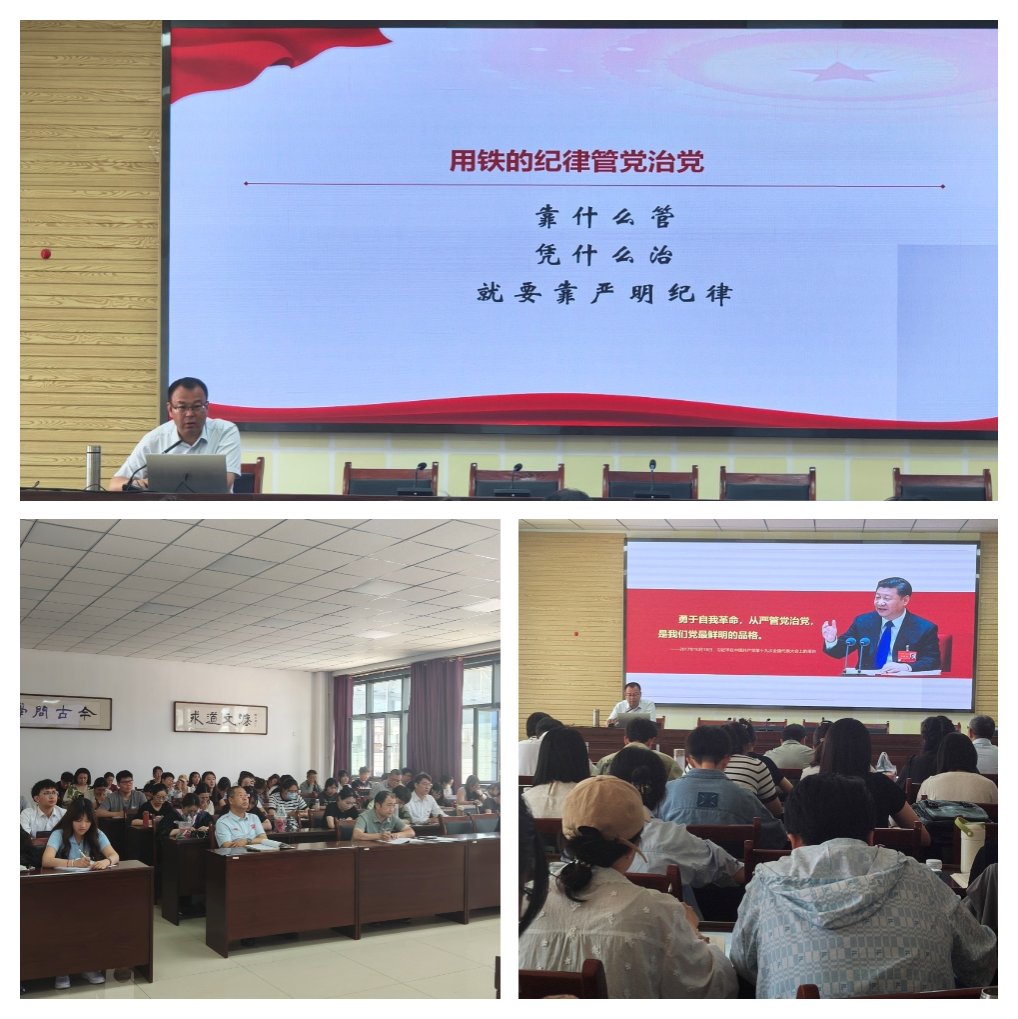 为深入学习贯彻习近平总书记关于加强党的纪律教育的重要论述,推动党纪学习教育入脑入心走深走实,2024年5月30日下午,公司党委在明德楼A411组织召开党纪学习教育专题党课暨教职工政治理论学习,公司党委书记刘玉明以《加强党纪学习教育 推动全面从严治党不断向纵深发展》为主题做专题辅导。学院全体教职工以及员工党员参加此次学习。