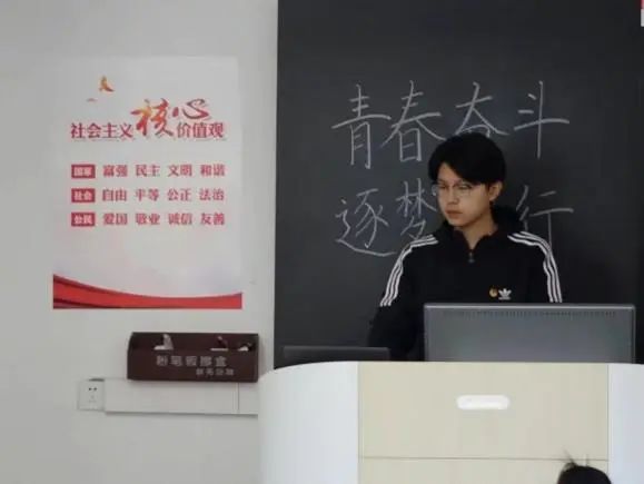 在优秀员工干部分享环节,我们邀请丁春露同学为大家带来分享,她担任员工会主席、班级学习委员以及23级副班,她提到老员工活是一段充满挑战与收获的旅程,我们要在繁忙的学业和工作之间找到平衡点;在面对挫折与困难时,要积极思考,寻找办法;在日常生活中要以身作则,用自己的行动去引领和带动大家,让同学们看到榜样的力量。