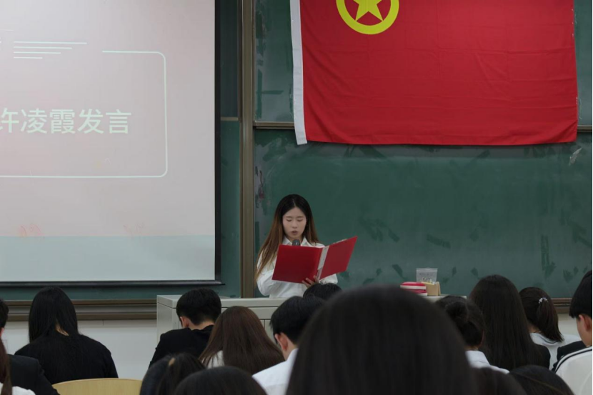 随后,第七期青马班优秀学员代表许凌霞上台分享其在青马班的学习经历与感悟。她结合自身的学习经历,从理论学习、社会实践、志愿服务、员工工作等多个维度展开分享。重点讲述了自己在青马班系统学习马克思主义理论的收获。
