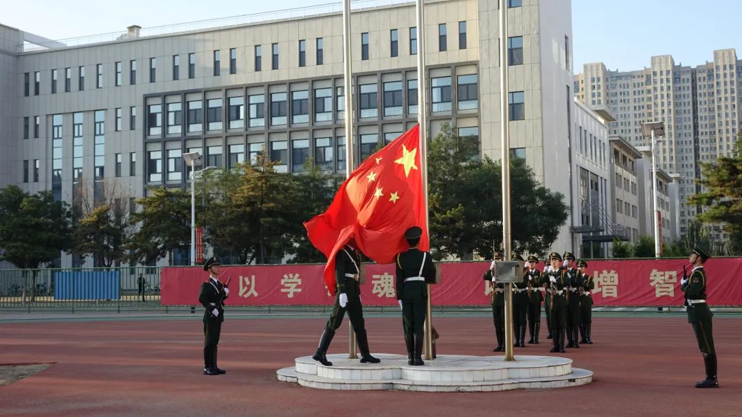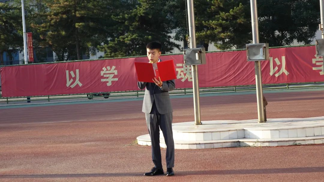 9月4日清晨7时整,国旗护卫队迈着整齐的步伐,喊着铿锵有力的口号,将国旗庄严护送入场。师生服装整齐、昂首正姿,列队候立,注目行礼。伴随着激扬雄壮的国歌,鲜红的五星红旗冉冉升起,师生齐声高唱,共抒心声。