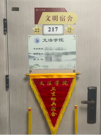 卫生标兵宿舍:每月两次常规卫生检查评分前几名的宿舍会被评为“卫生标兵宿舍”,并得到一面流动红旗挂在宿舍门口,超有面子!