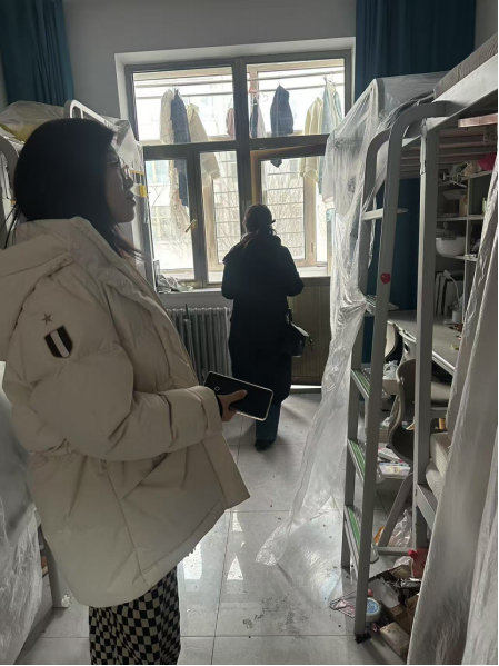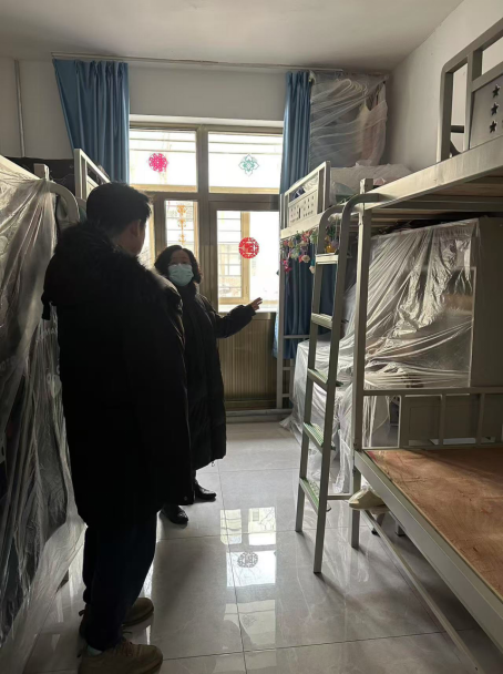 1月13号上午10点,公司党委副书记兼副经理孙静携各辅导员老师们深入宿舍,开展宿舍安全检查和未离校员工走访工作。