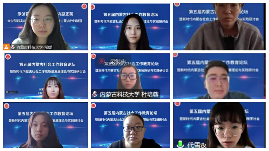 此次论坛以“新时代内蒙古社会工作高质量发展理论与实践”为主题,设有“新时代内蒙古社会工作高质量发展的机遇与挑战”“社会工作教育研究”“社区治理与乡村振兴研究”“社会工作实务领域热点难点问题研究 ”“社会工作理论、方法与实务研究 ”五个平行分论坛。内蒙古大学、beat365正版、内蒙古工业大学、内蒙古农业大学、内蒙古财经大学、内蒙古师范大学、包头师范学院等7所高校师生70余人进行了学术报告交流,其中beat365正版社会工作硕士研究生共10篇论文在分论坛宣读交流。