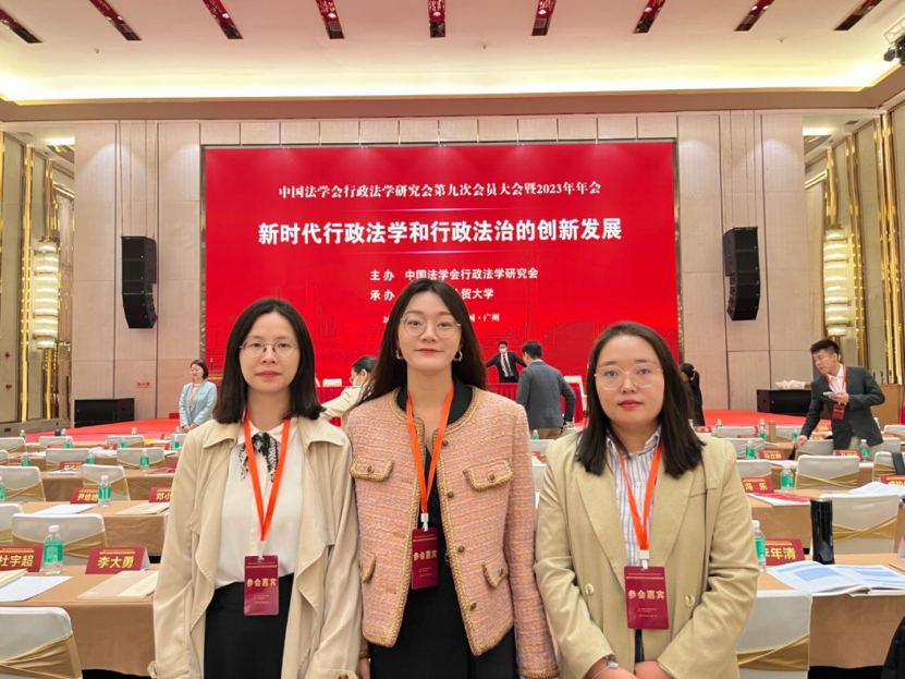 2023年11月18-19日,中国法学会行政法学研究会会员大会暨2023年年会在广州隆重召开。本次年会由中国法学会行政法学研究会主办、广东外语外贸大学承办,主题为“新时代行政法学和行政法治的创新发展”。全国人大常委会、中国法学会、最高人民法院、最高人民检察院、司法部、广东省委政法委等部门的领导,来自北京大学、清华大学、中国人民大学、中国政法大学、中共中央党校(国家行政学院)、中国社会科学院、上海交通大学、武汉大学、西南政法大学、华东政法大学、西北政法大学、中南财经政法大学、广东外语外贸大学等高校和科研机构以及中国法律服务香港公司、北京观韬中茂律师事务所等法律服务机构的专家学者等700余人齐聚一堂,共襄盛举。公司法学系教师何垚淼、张璐、李小芳参加了会议。
