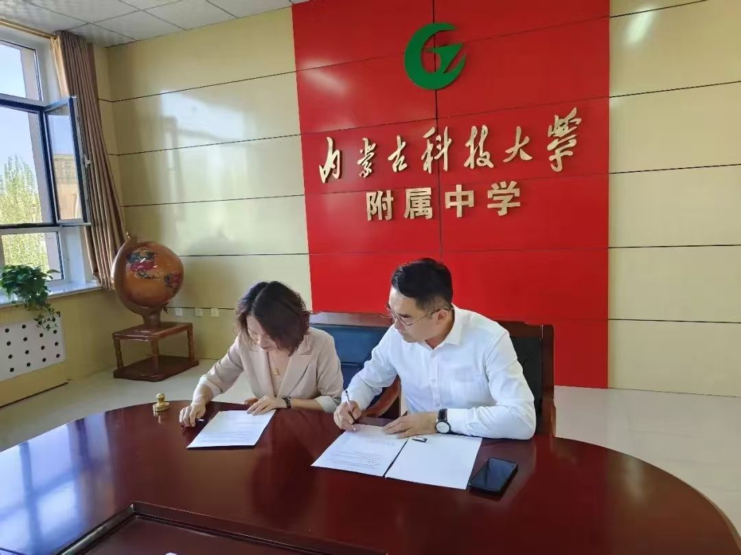 2023年9月27日下午beat365正版科大附中校外实践教学基地签约授牌仪式在科大附中办公楼四楼会议室举行。文学院副经理王继霞、学科语文教育中心副主任包玉琼、秘书系主任姜磊、科大附中董事长石岩、办公室主任高捷出席了本次签约仪式。