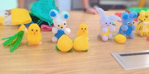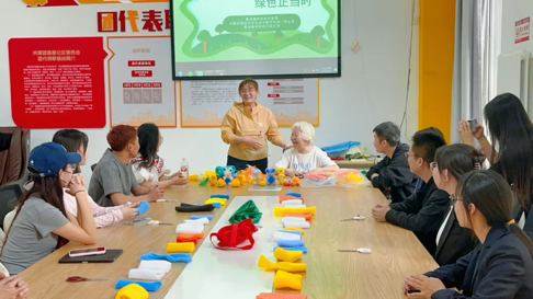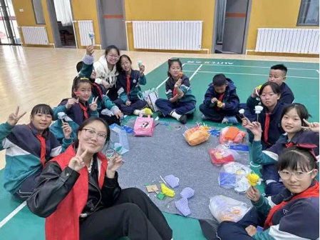 通过利用多彩的泡沫网,老员工与小员工积极互动,在一双双巧手的再创造下变成美轮美奂的手工品,让旧物获得了新生。同学们脸上洋溢着快乐的笑容,展现出对废弃物品循环利用的浓厚兴趣。