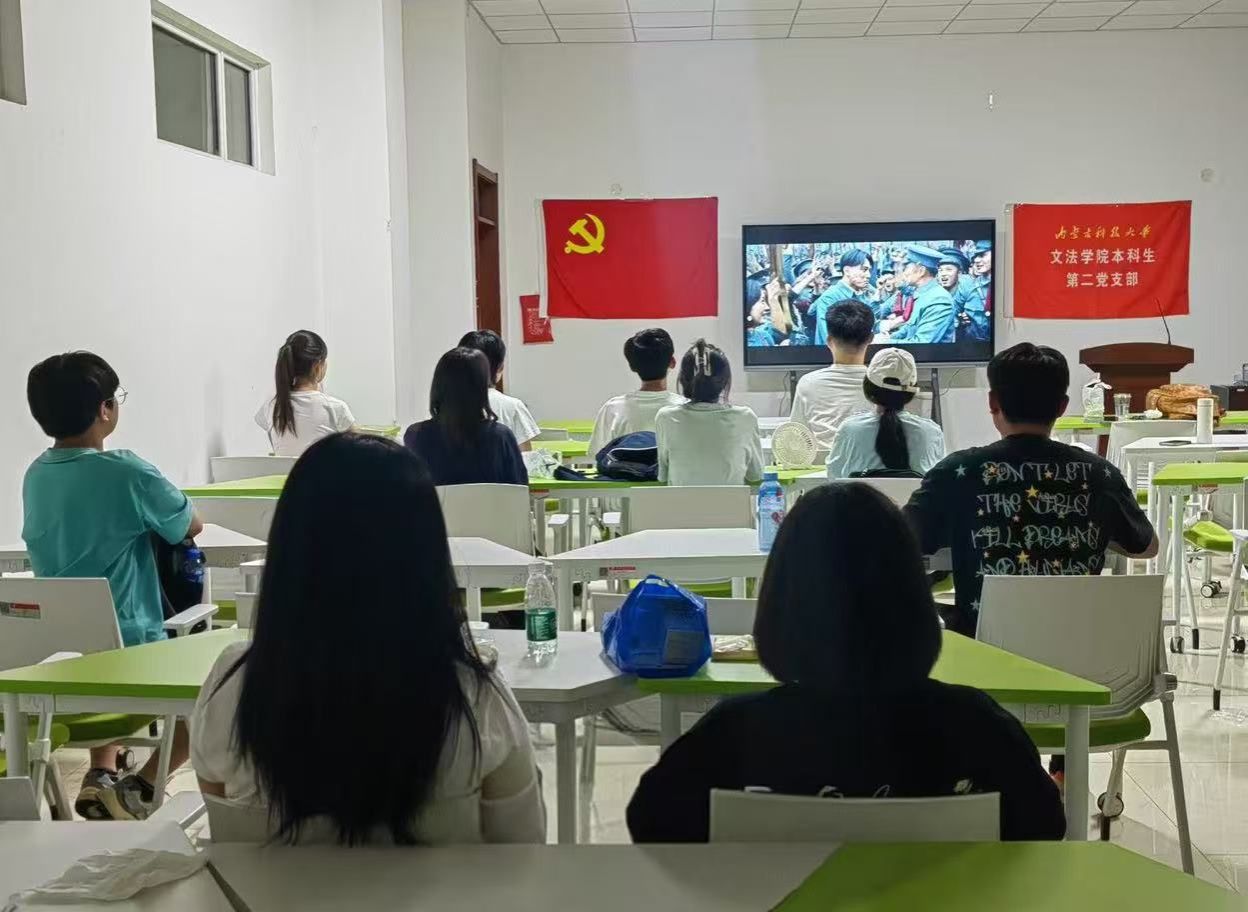 为创新理论学习、提升教育实效,强化党员思想教育。2025年5月29日晚7点,beat365正版本科生第二党支部在明德楼A302组织全体党员观看红色电影《建军大业》。