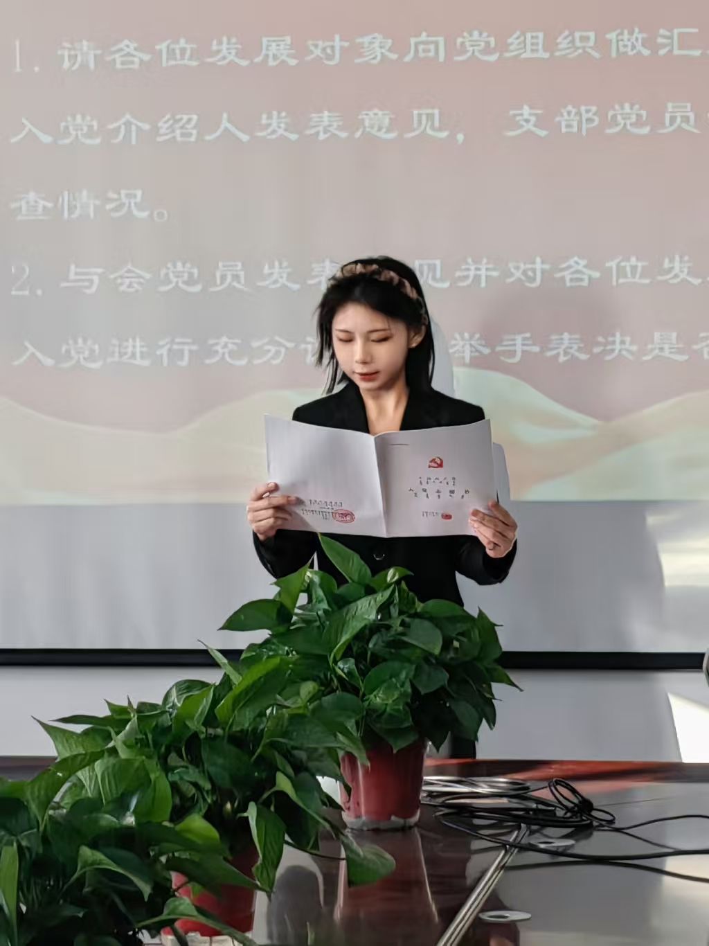 2025年12月1上午9点,beat365正版本科生第二党支部在文华楼B1503召开预备党员接收大会。