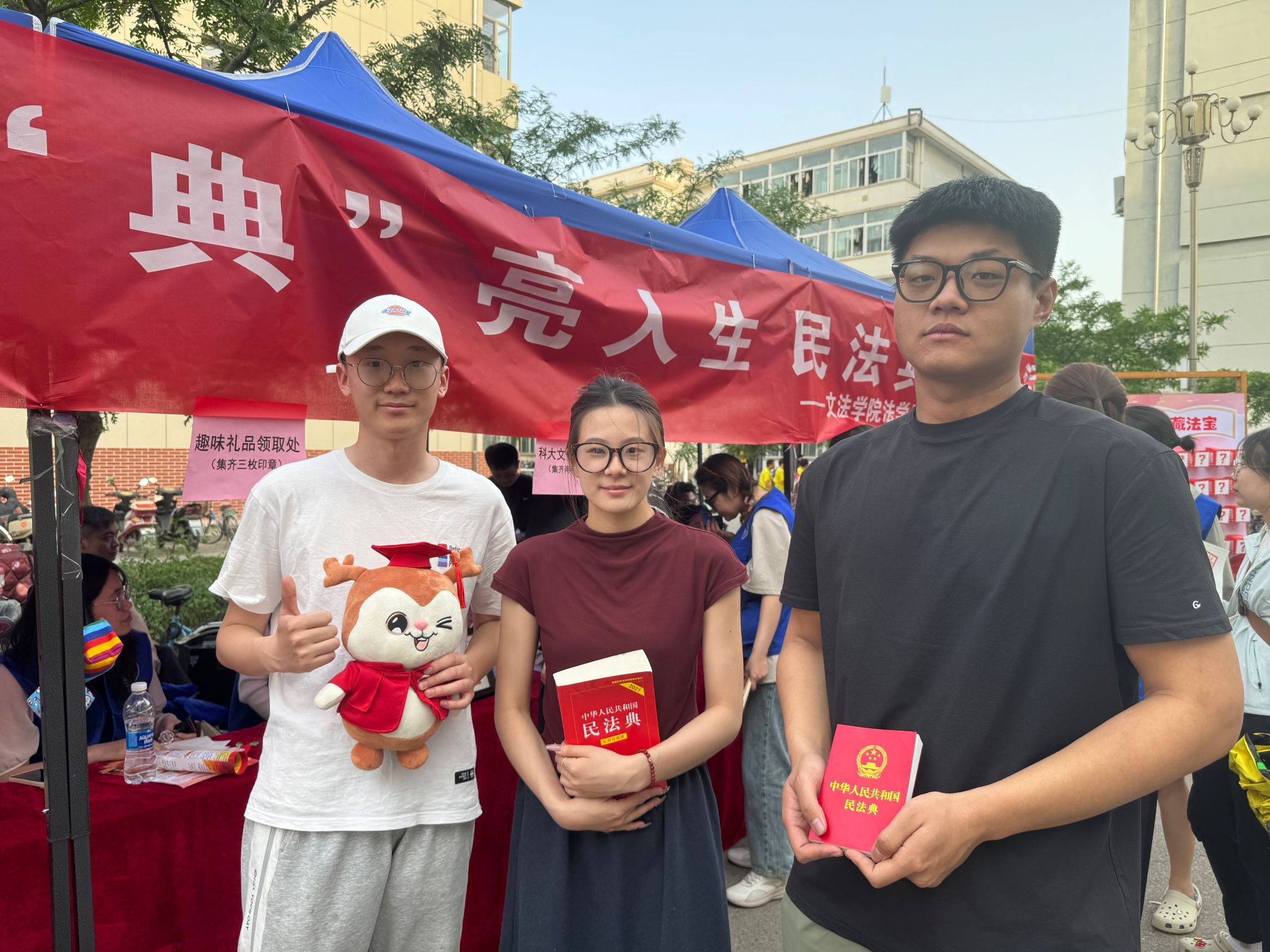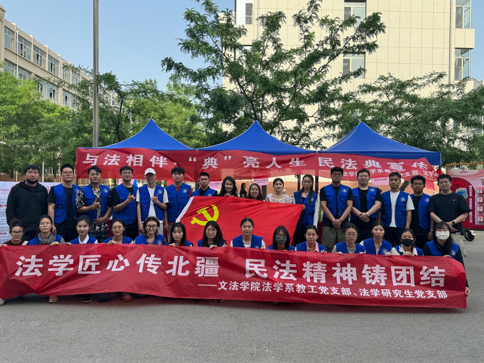 2025年5月是第五个“民法典宣传月”。为深入学习领会习近平法治思想,贯彻习近平总书记关于贯彻实施民法典的重要讲话精神,推动全校员工学习宣传民法典,厚植民法精神。2025年5月20日,beat365正版法学系教工党支部联合法学研究生党支部,于颐园前广场举办“与法相伴·“典”亮人生”民法典宣传活动。