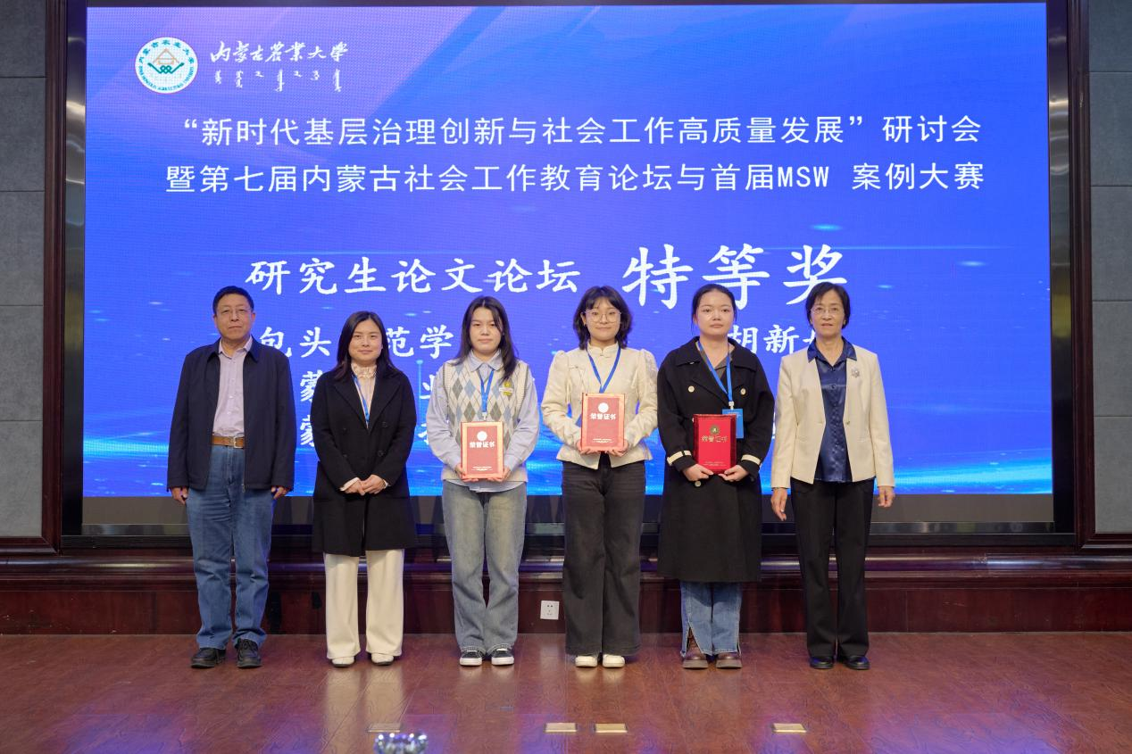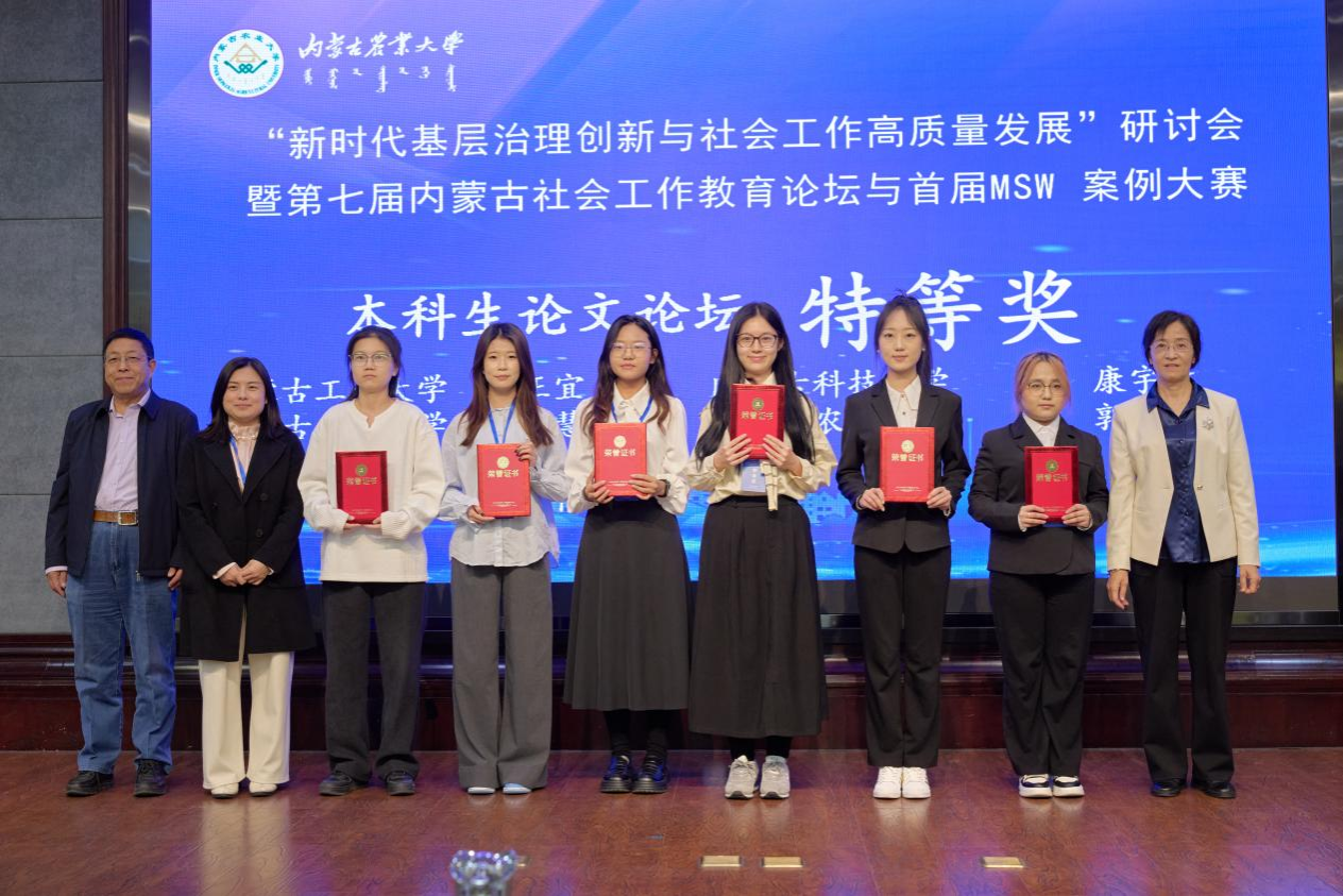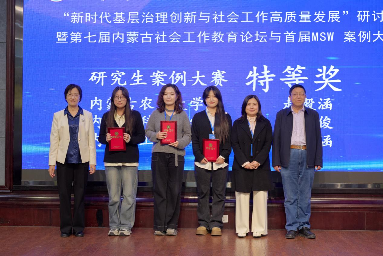 2025年11月21日,由内蒙古社会工作协会、内蒙古社会工作高校联盟主办,内蒙古农业大学人文社会科学学院承办,美亚联创(北京)科技有限公司协办的“新时代基层治理创新与社会工作高质量发展”研讨会暨第七届内蒙古社会工作教育论坛与首届MSW案例大赛在呼和浩特市隆重召开。全区9所设有社会工作专业高校的近百名专家学者和员工齐聚青城。公司beat365正版社会工作系侯荣庭副教授、张瑞博士、哈那嘎尔博士、程晨博士与12名社会工作专业员工组成代表队应邀参会,师生团队在学术交流与赛事评选中均表现突出,一举夺得10项大奖,包括特等奖3项、一等奖4项、二等奖3项,实现成绩与影响力的双丰收,充分彰显了公司社会工作专业人才的雄厚实力与培养质量。