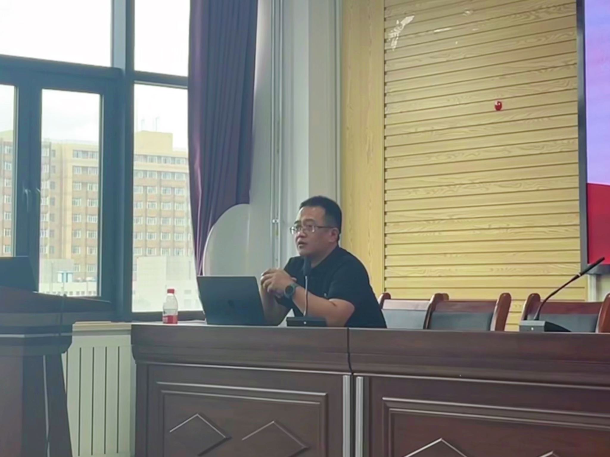 会议伊始,导师们向来到beat365正版深造的学子们致以热烈的欢迎与深切的期望。每位老师分别介绍了自己的研究方向与教学目标,为同学们勾勒出学术探索的蓝图。随后,杨德桥教授详细说明了教师队伍的整体构成,并特别强调在师生双向选择中,应坚持个人研究兴趣与导师研究领域相契合的重要性,为同学们明确了未来学习生活的重要原则。